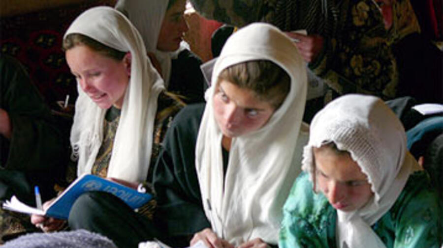 Girls who would previously have been kept at home now learn basic literacy skills at this school in Khan Baihi, Parwan province, Afghanistan.