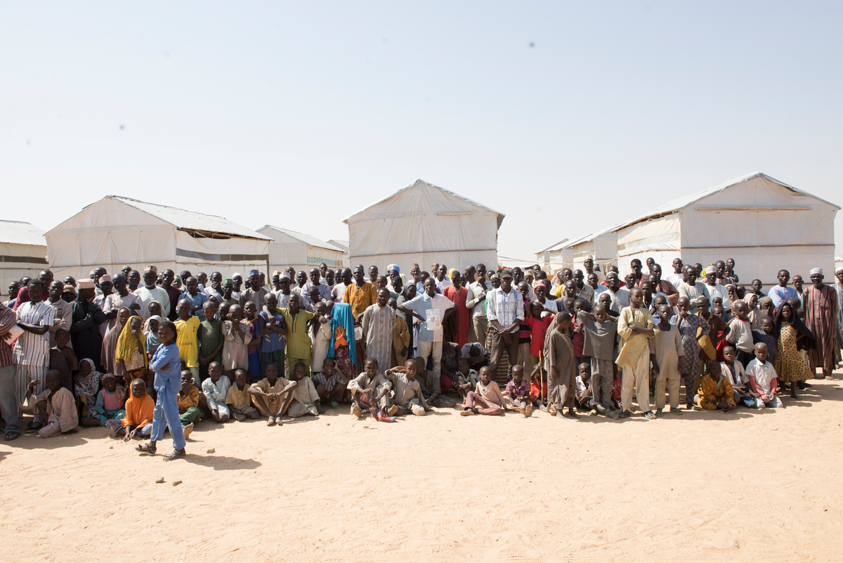 A crowd gathers at a camp for internally displaced people in Maiduguri, Nigeria, during a visit by UN High Commissioner for Refugees Filippo Grandi in December 2016.