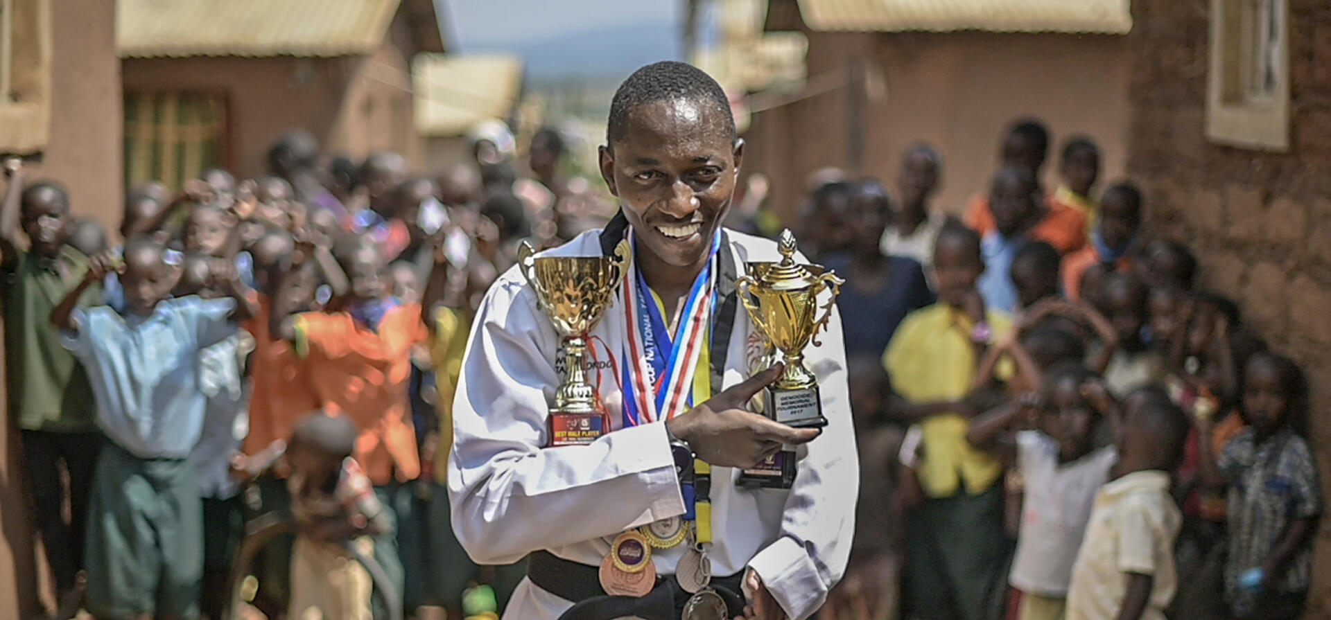 When post-election violence broke out in Burundi shortly after the 2015 elections, Parfait was forced to leave everything behind and flee. He found safety in Rwanda, where he was pleased to find a vibrant sporting community. Within a year, he had started a taekwondo club and hundreds of Burundian refugees had signed up for classes.