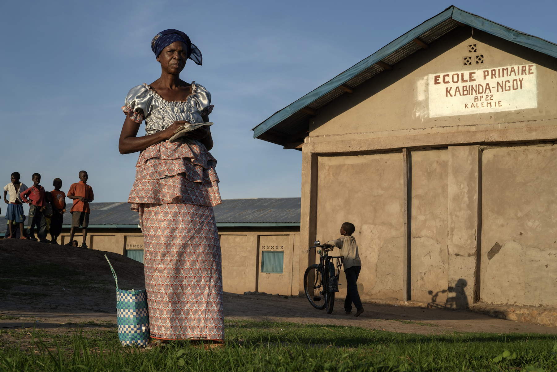 Okenge Sakina collects water at the well in Lukwangulo, DR Congo.
