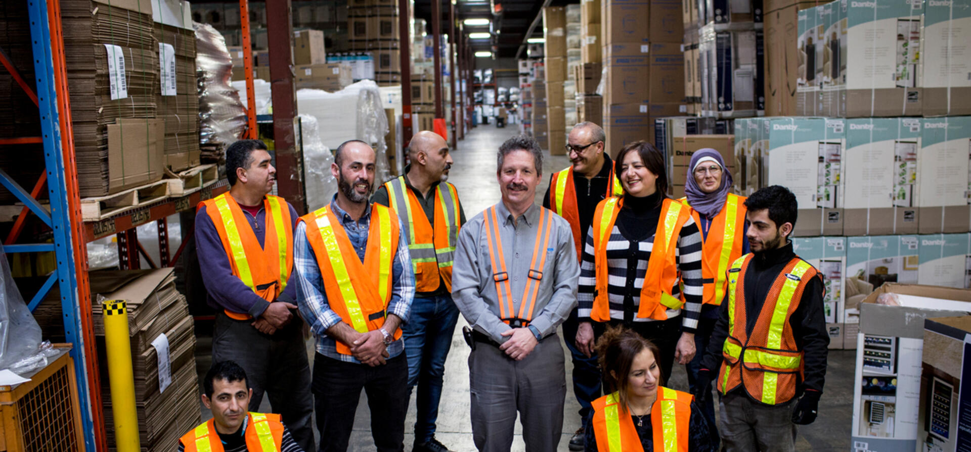 The refugees gingerly navigated the noises and language of the warehouse floor, learning to be careful of forklifts and how to use the machinery.