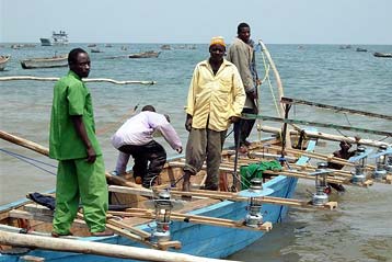 So far, five collectives have been given what are called fishing "kits" consisting of a motorized patrol boat to protect against pirates on Lake Tanganyika, and two connected outrigger fishing boats which drag a net between them. As the fishing is done by night, special lamps are also part of the kits. The boats are made in local boatyards, like the one in Rumonge, giving employment to other workers as well.