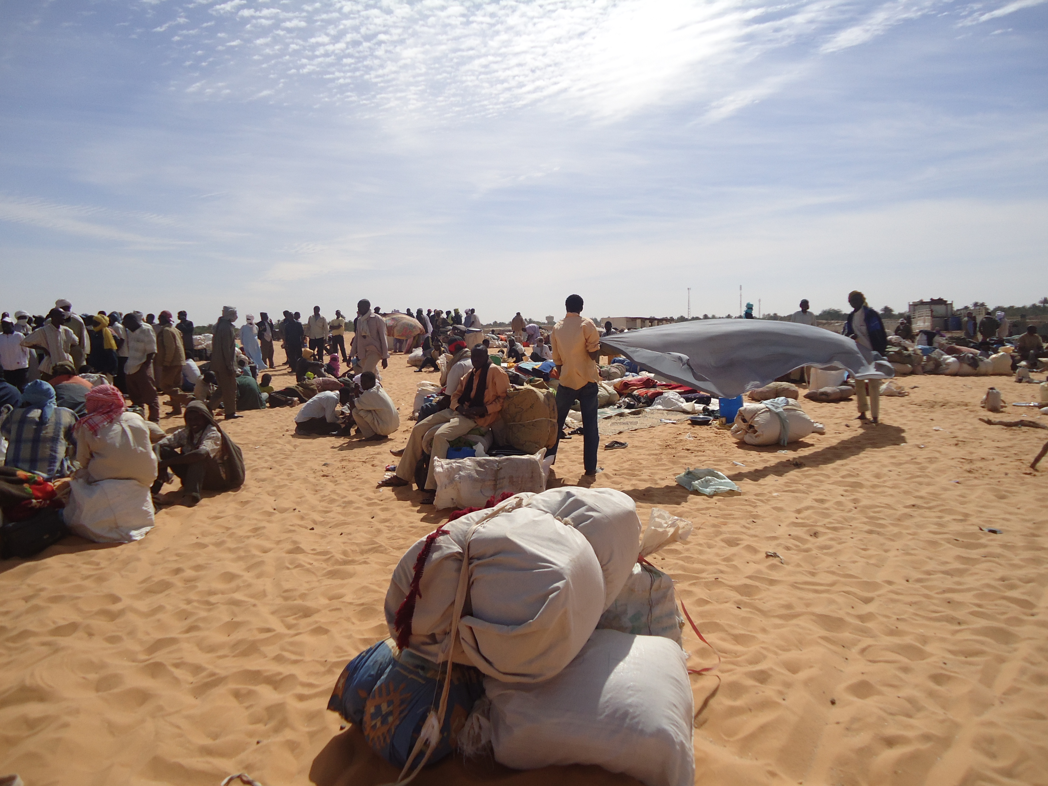 Under the scorching sun, they endured three weeks or more of an uncomfortable journey on rickety trucks, perched on top of heaps of luggage, jerry cans and rolled-up mattresses. They travelled 1,000 km to reach the safety of their own country, crossing parched landscapes in the Sahara desert with only a few jerry cans of water. Some took a detour through Niger to avoid a mined area in northern Chad, entering Chad through the western town of Zouar. Smaller groups entered through eastern Chad via Ounianga Kebir in the Ennedi region.
