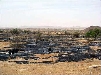 Charred village sends message of terror to displaced Darfurians