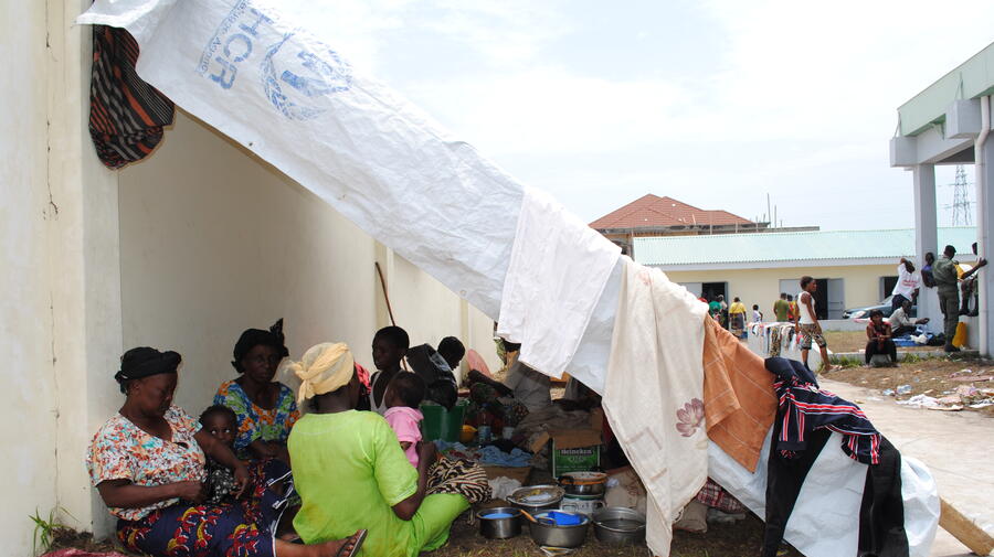 "I don't even have a piece of plastic sheeting to create some shade," the mother of five told UNHCR in the city's Nkombo covered market as she watched a family build a makeshift shelter with precious plastic sheeting. "I've been here since Monday. I'm in the sun, I have no place to stay in the covered part of the market, I cannot even cook," she said. "I wait for the evening to come and the sun to sink before I can do anything, but it is very hard."