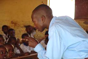 Congolese refugee Kayago being tested on his teaching skills at the Congolese school in Bujumbura.
