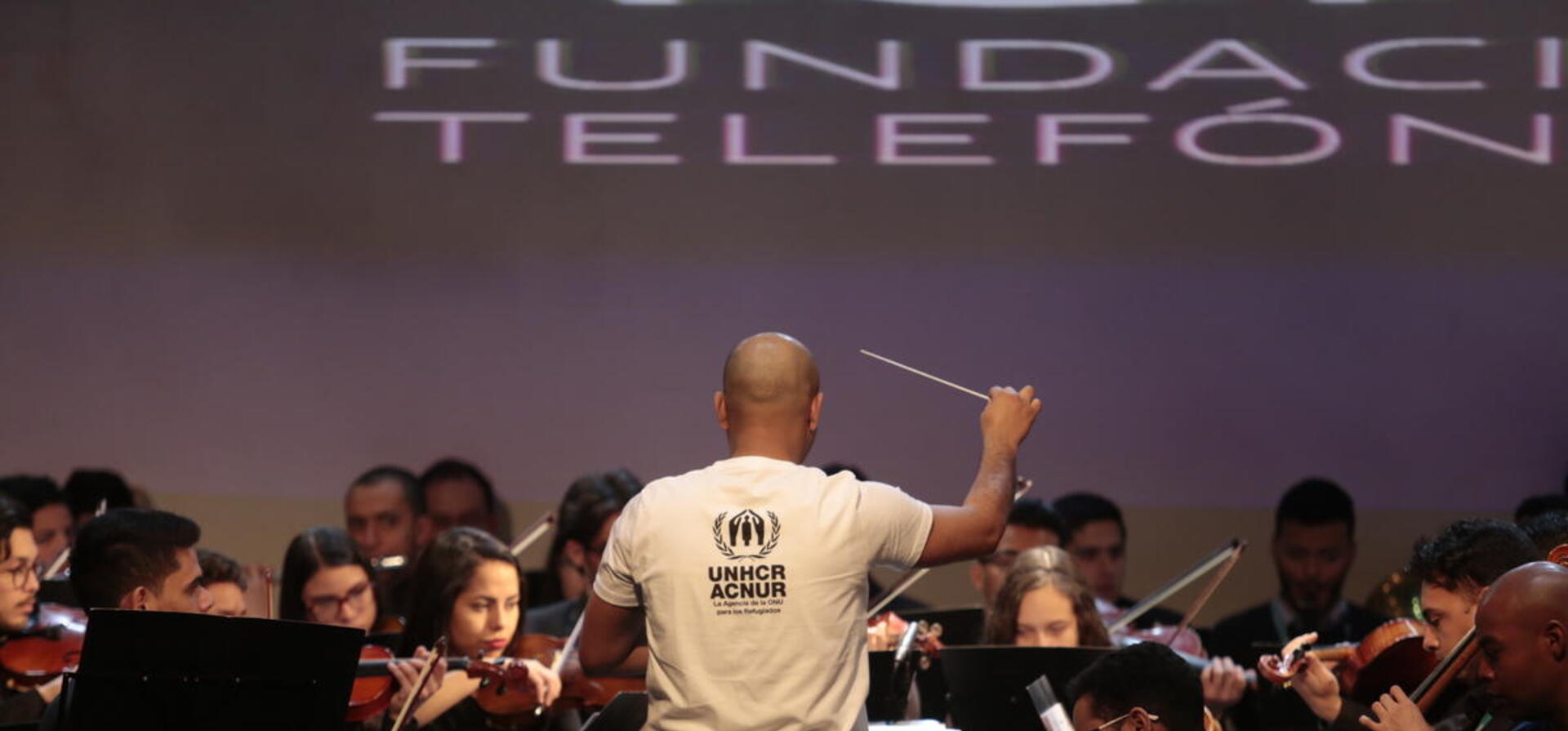 The Music for Integration Foundation Orchestra, led by Venezuelan conductor Simón Arias, performs in Santiago, Chile, in 2019.