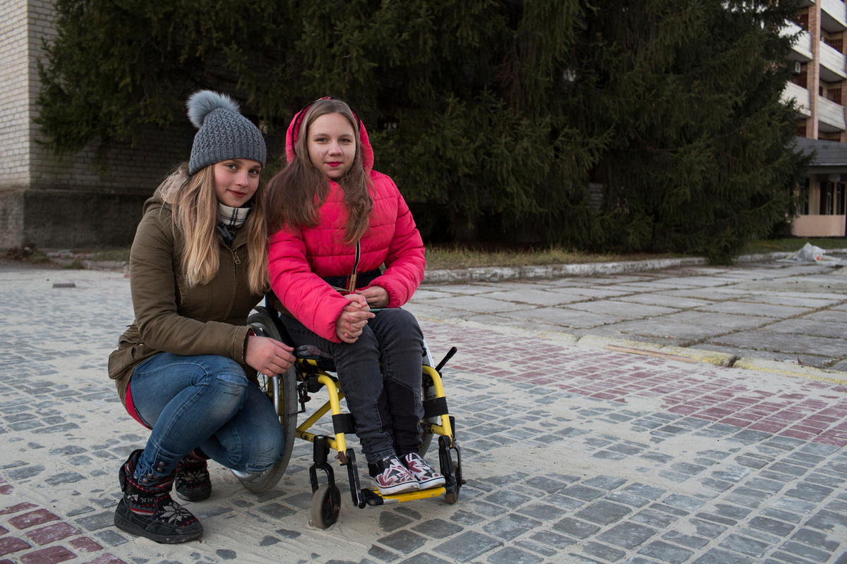 However, Vlada is frustrated that she has been unable to attend school. The local school is several kilometres away and, unlike the school she attended in Luhansk before the fighting, is not accessible has no facilities for students with disabilities. Now, teachers go to Vlada's room and she learns alone, while her friend Sasha spends the day in classes with others.