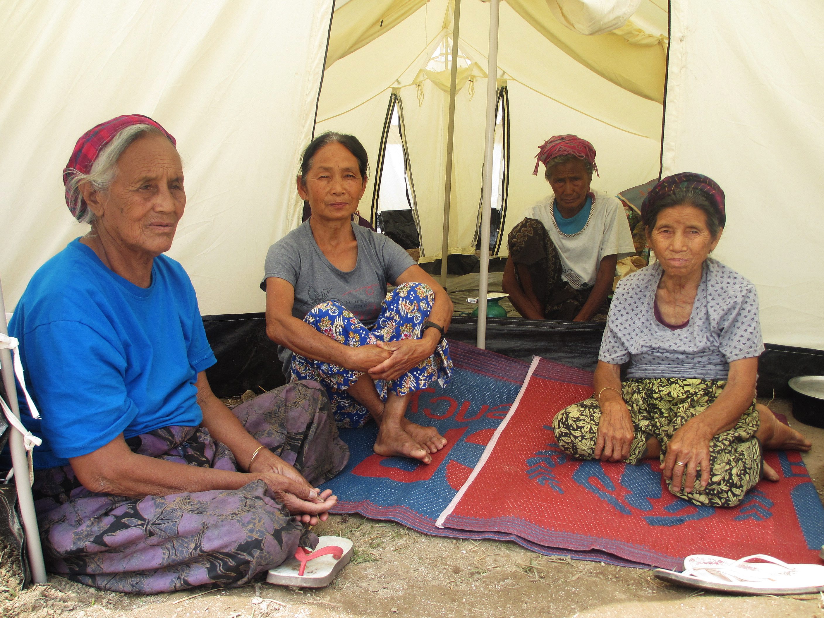 A group of older Kachin women who have been forcibly displaced discuss their future.