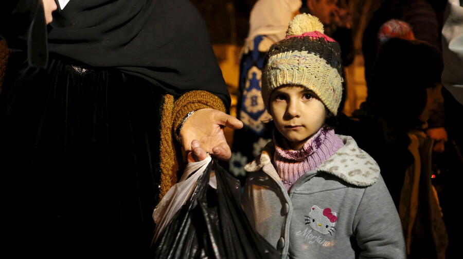 The first four trucks rolled into the town shortly after dark on Monday (January 11) in bitter cold. They were immediately surrounded by shivering children and adults, some showing clear signs of malnourishment and desperately asking for food, according to the UNHCR's representative in Syria, who was on the convoy.