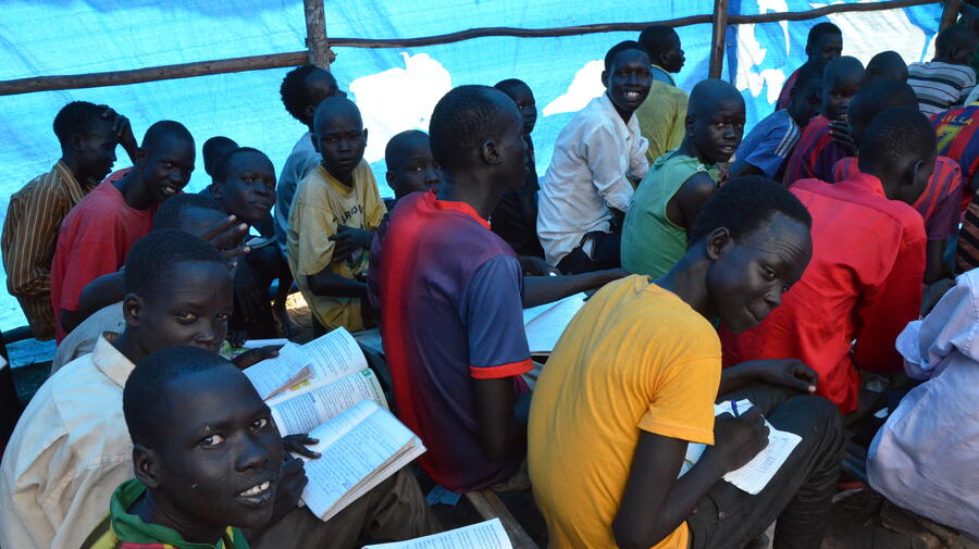 At 19 years, William Chol is one of the one of the oldest pupils in the primary school, as his education had frequently been interrupted. "I need to finish my studies to make plans for my future. I would like to be an aircraft pilot or an engineer," says the young man, who left his mother and brother behind in the South Sudan capital, Juba, and came to the camp alone.