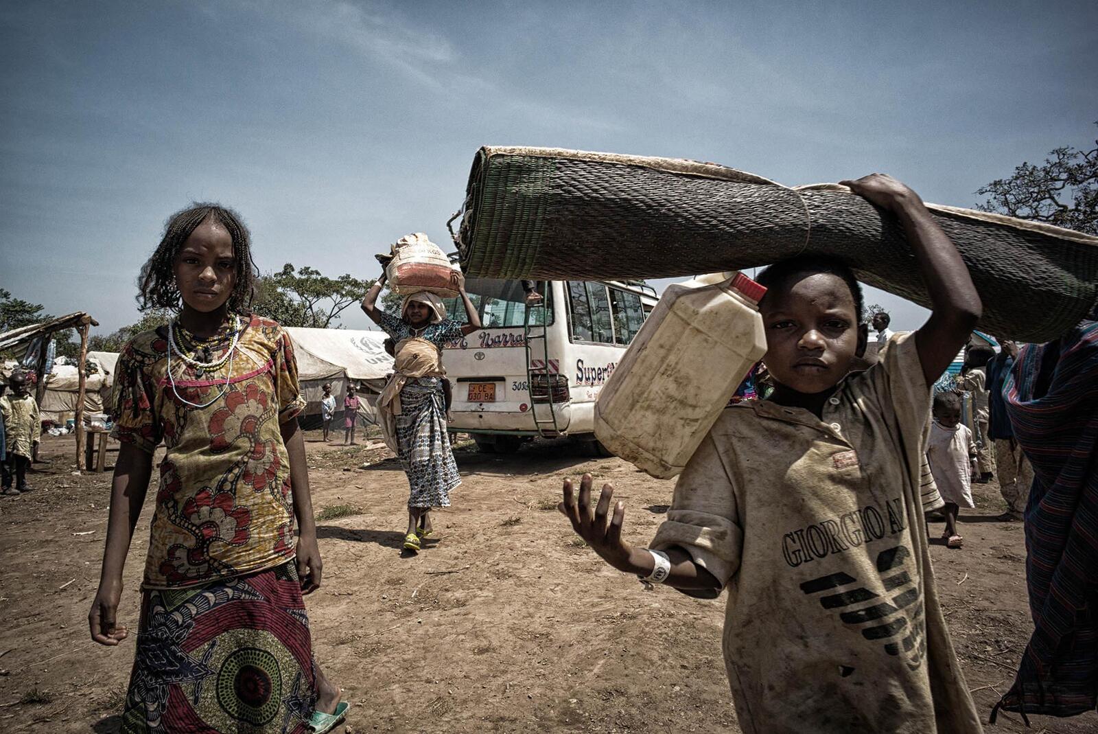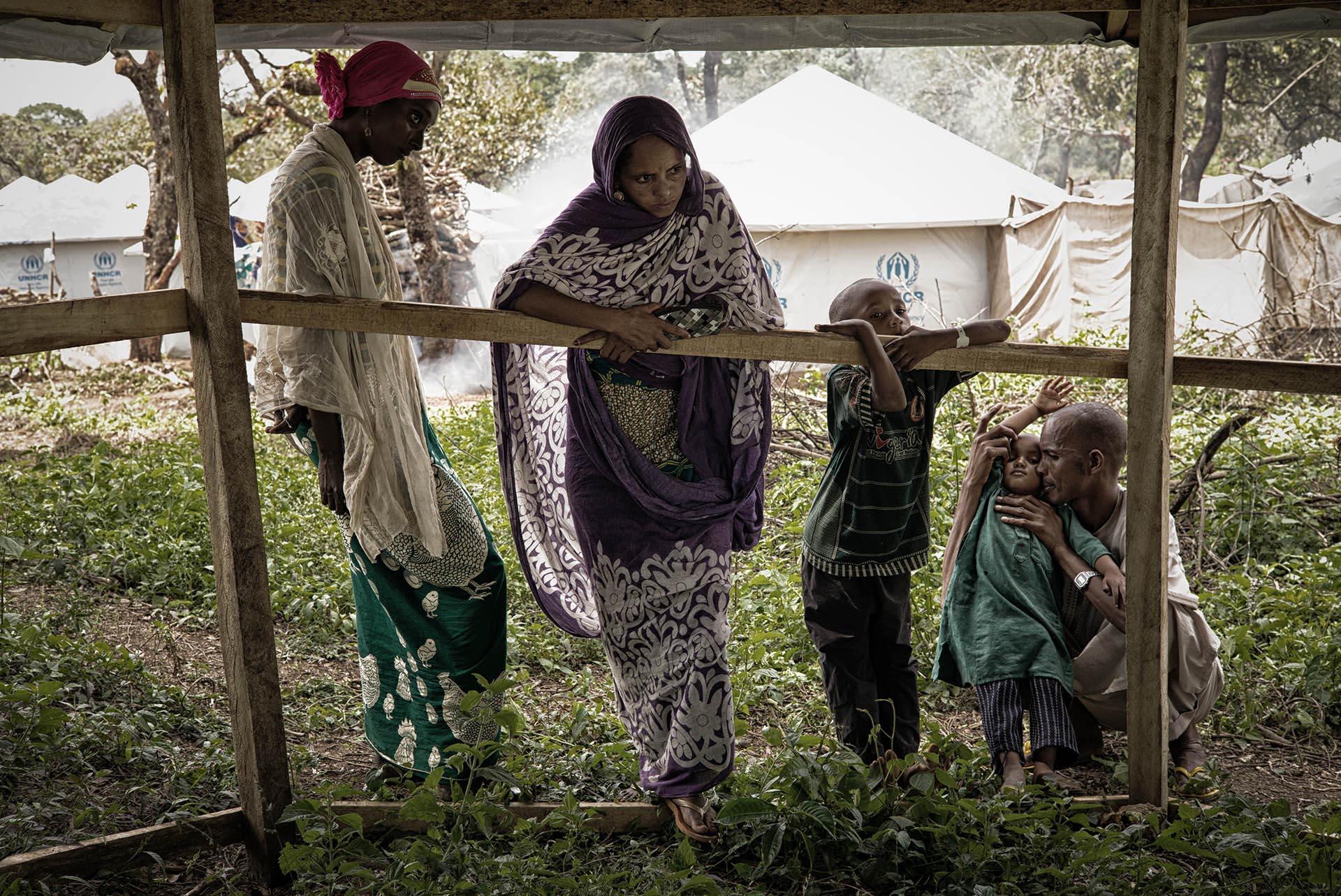 Idris smells them, licks their cheeks and kisses them all over, as if to make sure the situation is real. Reassured, he turns and casts a grateful glance at his wife, Hamina, 28. Looking more closely, he notices that the boys are wearing plastic bracelets with the UNHCR logo.
