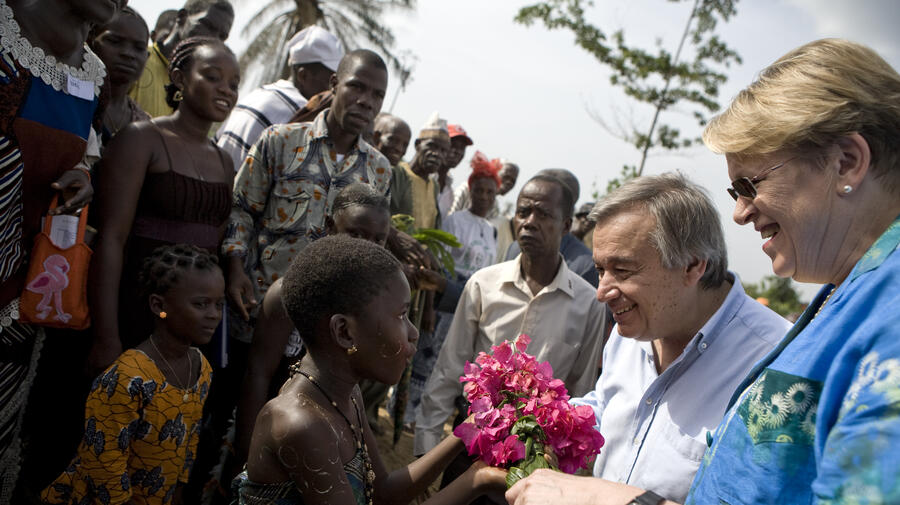 Guterres hailed the inhabitants of Buutuo and other villages in eastern Liberia for their generosity towards the refugees streaming across the border. "In a world full of egotism, where rich countries are closing their doors, you have opened yours and shared what you have, and what you do not have," he said.