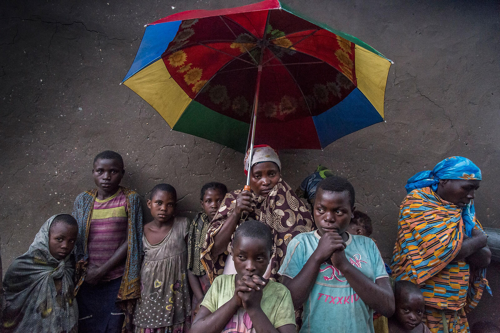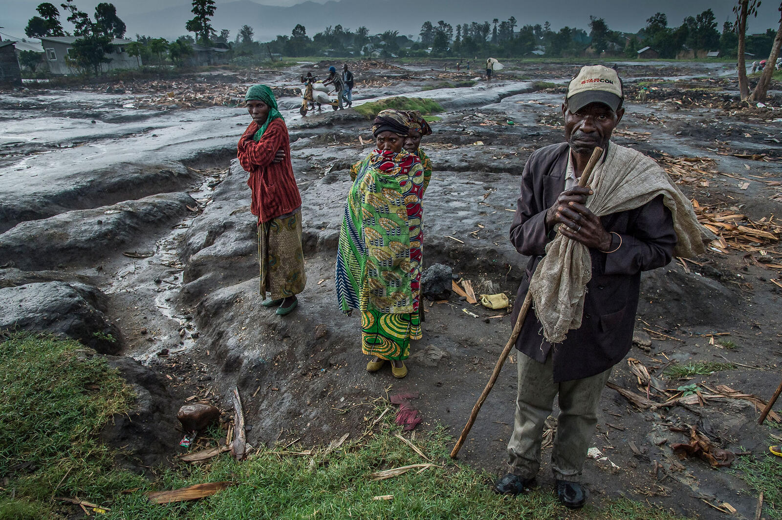 Rain pours down on the scorched ruins of what was, until just a few weeks ago, a refuge for thousands of people displaced inside the volatile North Kivu province of the Democratic Republic of the Congo. Dozens of former inhabitants, mainly women and children, gather around us to recount their latest experience of fear and flight.