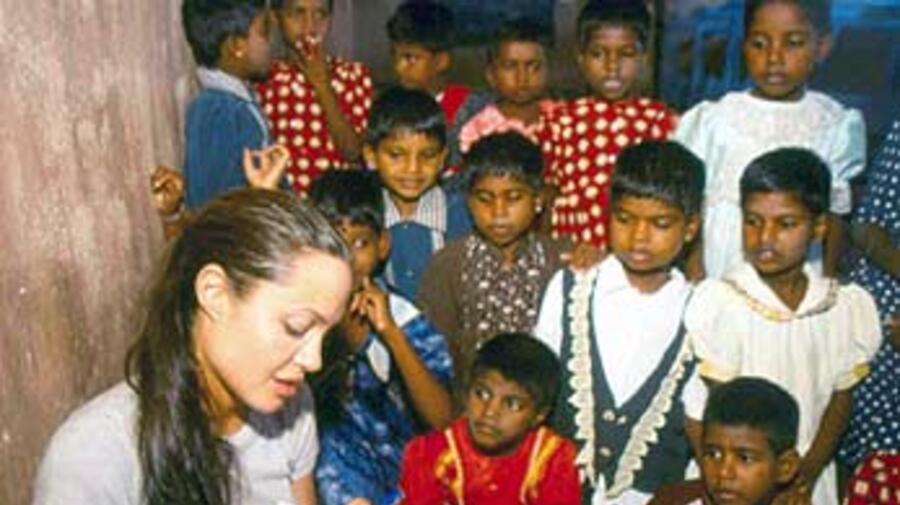 UNHCR Goodwill Ambassador Angelina Jolie visiting a home for orphaned and abandoned girls in northern Sri Lanka.
