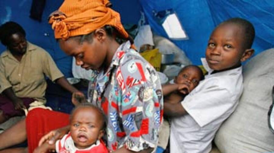 A woman and children at a shelter in a site for internally displaced people in the Rift Valley Province. Many of the displaced are still reluctant to return home.