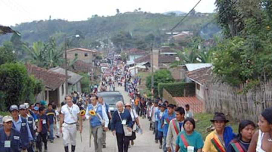 CALDONO, Colombia, April 14 (UNHCR) - Armed only with their moral strength and a wooden baton as a symbol of their authority, the men and women of the Guardia Indígena (indigenous guard) of the Cauca have confronted ruthless guerrilla and paramilitary fighters armed to the teeth and persuaded them to turn back and leave their villages.