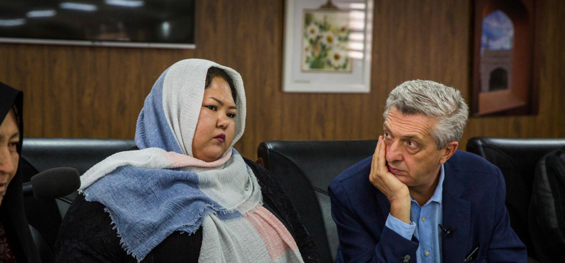 On the outskirts of Tehran, the UNHCR chief heard from members of the Afghan refugee community during a visit to the Persian Gulf Refugee Administration Centre which provides documentation services for refugees.