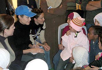 UNHCR Goodwill Ambassador Anglina Jolie visiting refugee children at a healthcare centre in Ruwaished camp, Jordan.