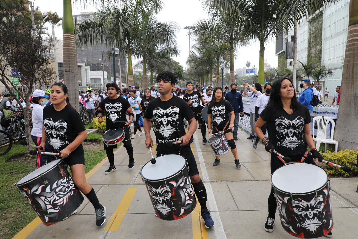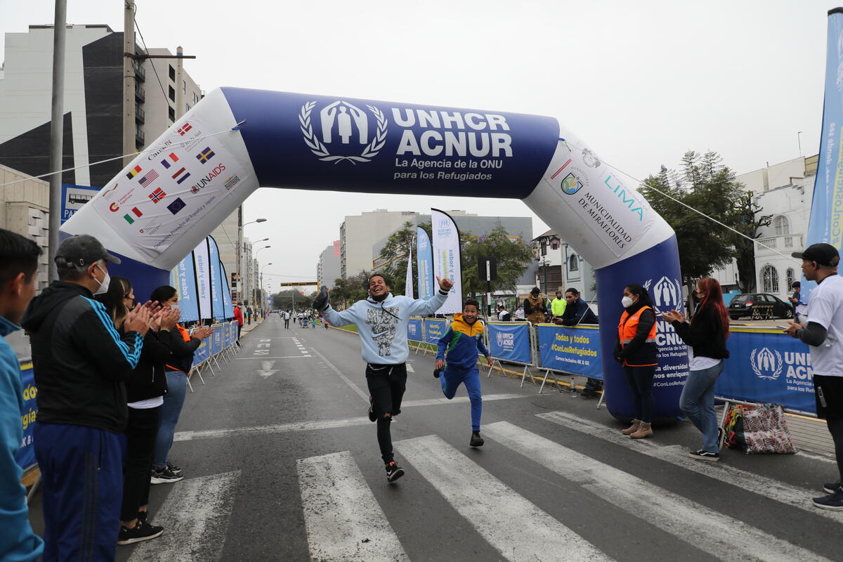 To the Peruvian capital, where UNHCR organised the first "Great inclusive run" and encouraged everyone to take part however they wished - walking, running, cycling, in wheelchairs or even on skates. During the race, participants were driven on by the precussive sounds of a local samba-inspired Batucada group, and after there was a concert featuring popular Venezuelan band Los Bacanos.