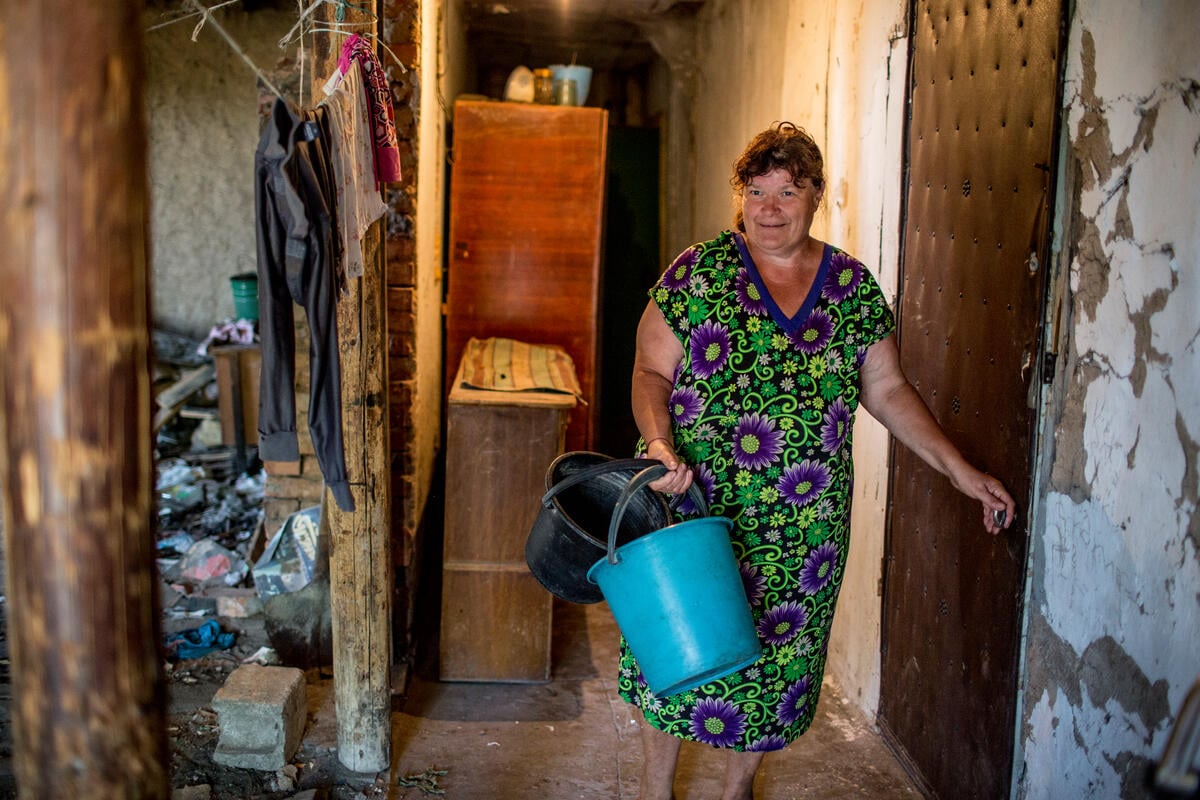 UNHCR helped repair the roof of her house, but one of its three rooms is too badly damaged to be habitable, and her monthly salary of 2,400 roubles (US$37) is too small to pay for construction materials.