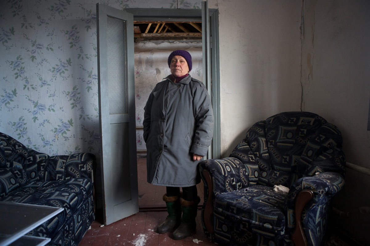 Next door, in one of the two habitable rooms left in the broken house, her daughter-in-law Natalia folds the mounds of clothes the family will need for the winter.