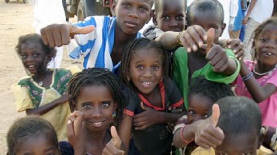 Mauritanian refugee children ham it up for the camera on their way home from Senegal.