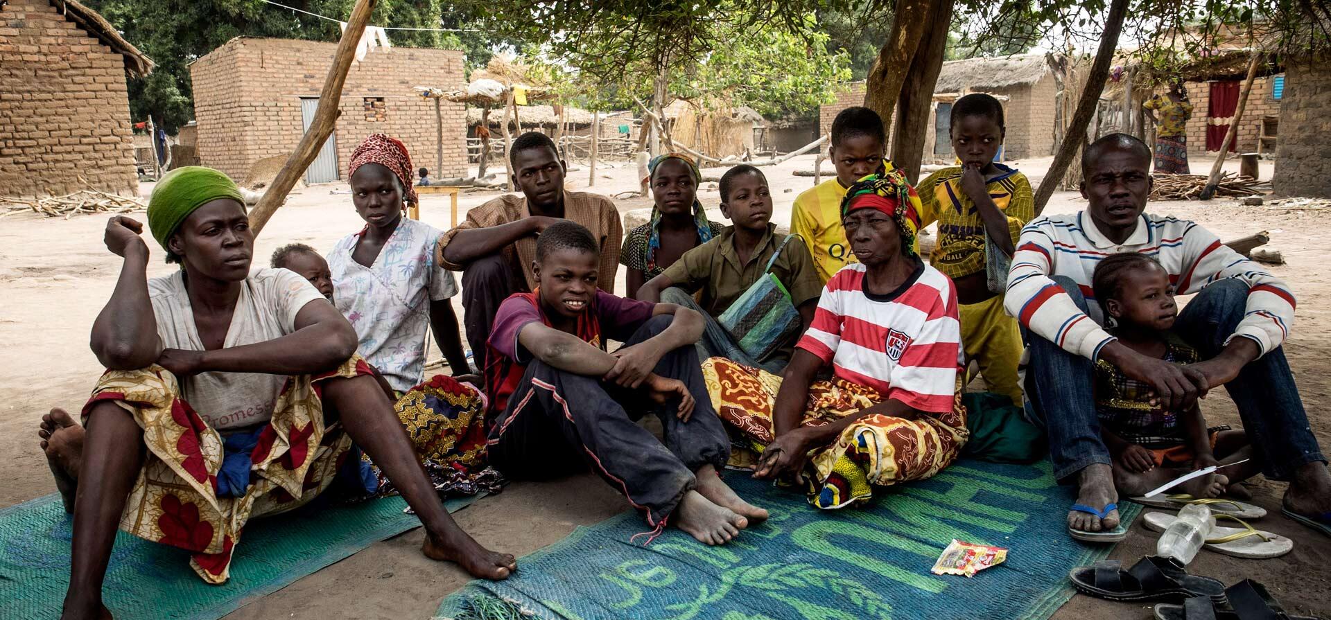 Jacob and his family rest under a tree by their new home in Chad.