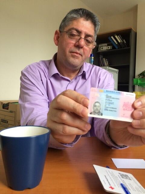Safe at last: Abdulmunem Radwan with his UK residence permit.