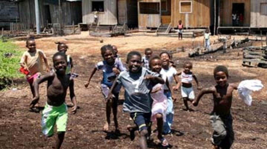Children of the Swamp: happy youngsters play in the safer, healthier settlement of Familias en Acción.