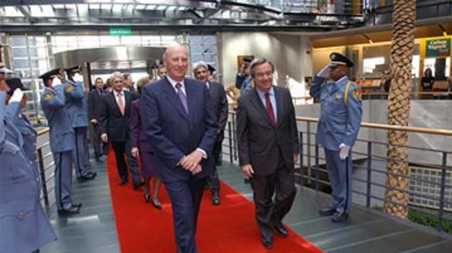 GENEVA, Apr 4 (UNHCR) - Their majesties King Harald and Queen Sonja of Norway, accompanied by Norway's foreign minister Jonas Gahr Støre, visited UNHCR's headquarters in Geneva on Tuesday where they were briefed on current humanitarian challenges facing the organisation.