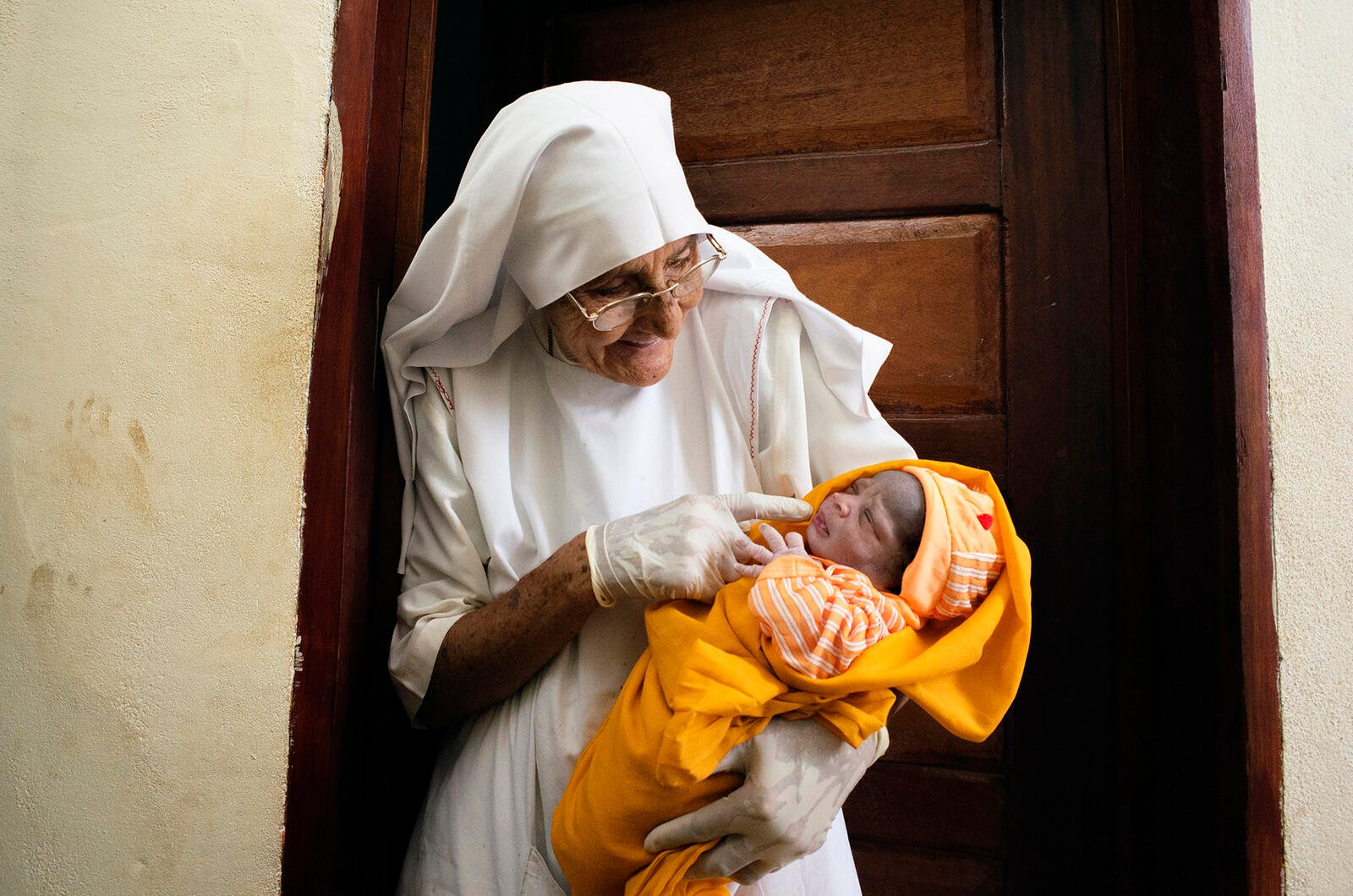 Sister Maria Concetta walks out of the labour room with a newborn baby in her arms and rushes through the corridors in search of a bed. The child is one of over 20,000 she has helped to deliver since she started working at the Zongo hospital near the Oubangui River, which flows between the Democratic Republic of the Congo (DRC) and the Central African Republic (CAR).