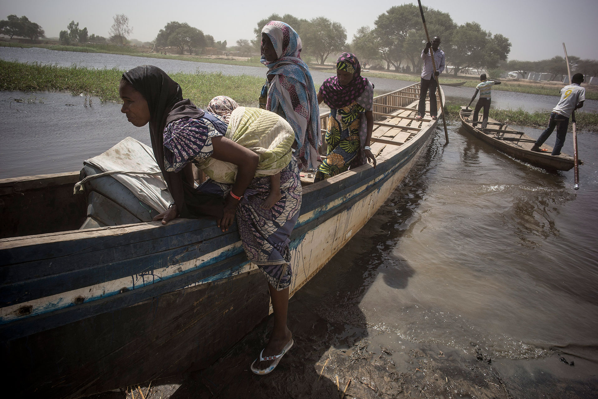 This boat is the last chartered by Chadian authorities and UNHCR to collect some 7,000 survivors scattered over countless islets, patches of sand that appear to have crumbled away from the mainland, much like icebergs released from a glacier. Conditions there are precarious, and many refugees only survive with the help of a few local residents. Their relocation to Dar-es-Salam, a site planted in an arid scrubland 75 kilometres from the Nigerian border, is an urgent, but challenging, humanitarian priority.