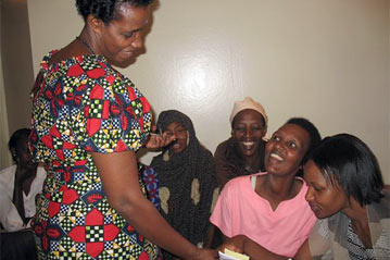 Rose Mapendo (standing) visits a clinic run by Mapendo International in Kenya.