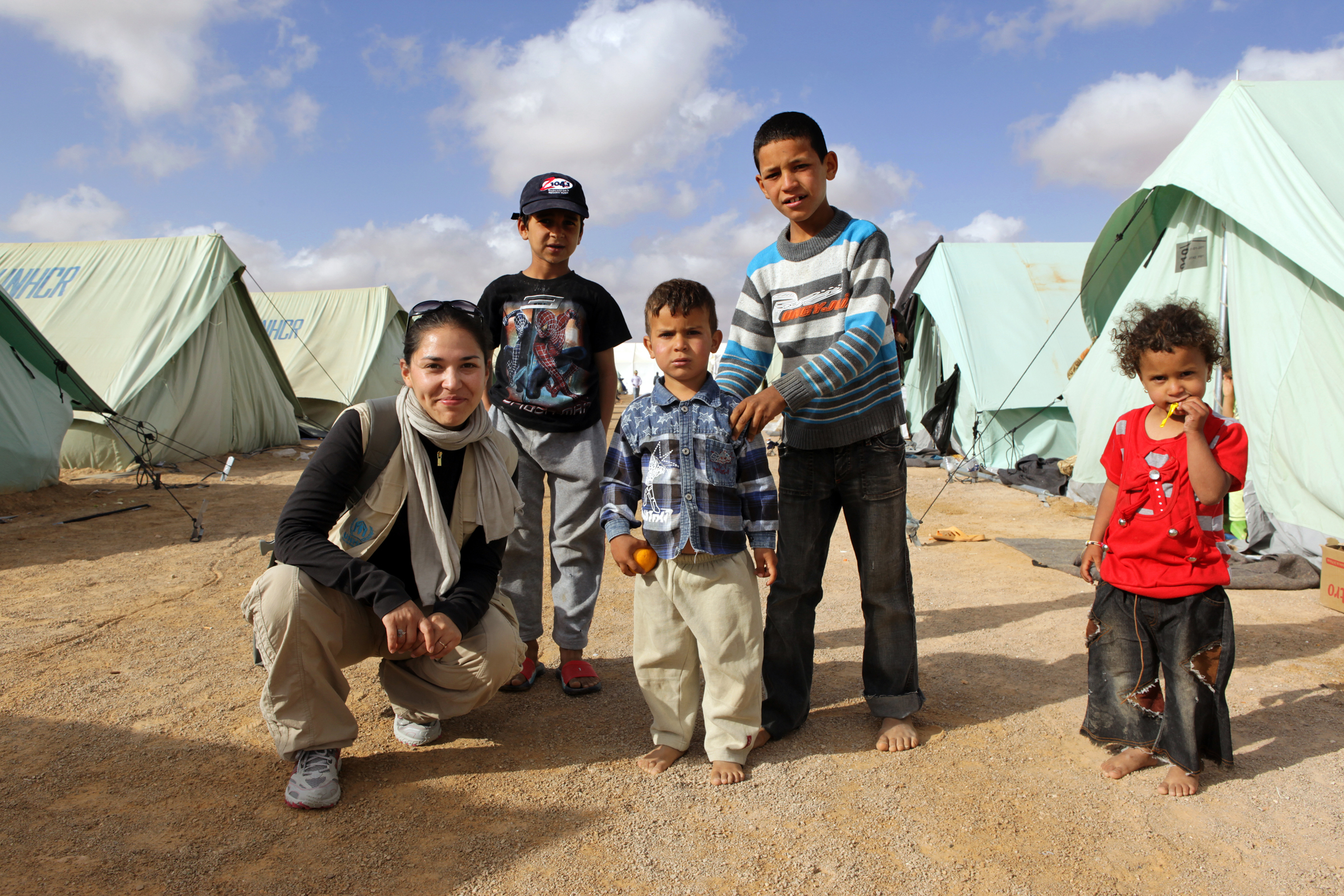UNHCR field protection officer Patricia Eckhoff with some new friends in Remada camp.