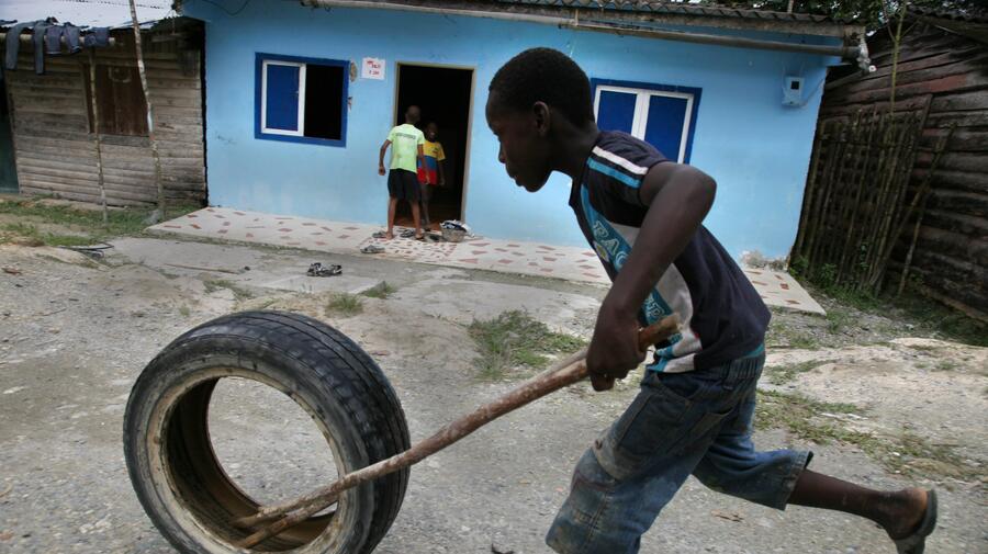 A young Afro-Colombian boy plays in a community of displaced people near the Pacific coast. The Afro-Colombians are among those of of particulalr concern to UNHCR.