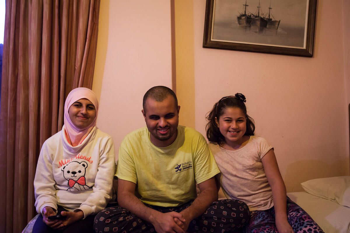 Ten-year-old Salam, from outside Damascus, shares a room at Hotel Rovies with her two older siblings. She has, by default, become their carer: her brother, 24-year-old Ashraf, is partially blind, while her sister, 22-year-old Ghufran, has developmental disabilities. They are among many vulnerable cases staying at the hotel after being referred there from other refugee reception sites in Greece.