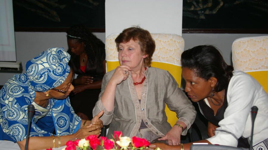 Attending the dialogue in Lusaka were (from left): UNHCR Representative in Zambia, Joyce Mends-Cole; UNHCR Assistant High Commissioner for Protection Erika Feller; and Zambia's Permanent Secretary of Home Affairs, Ndiyoi Mutiti.
