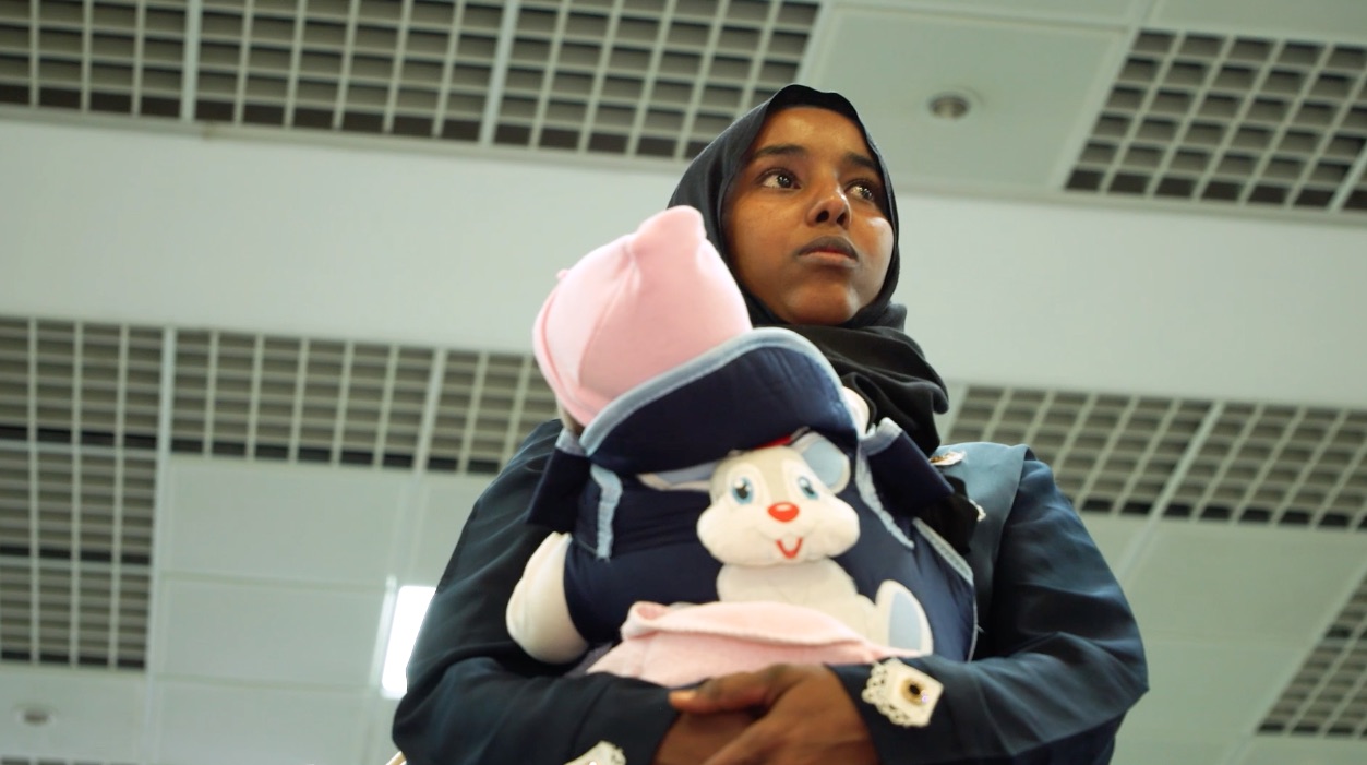 Zainab, her partner Abdulbasit, and their daughter are part of a group of 66 highly vulnerable refugees – including 22 children separated from their parents and wider family – evacuated on a charter flight to Rwanda from Libya.