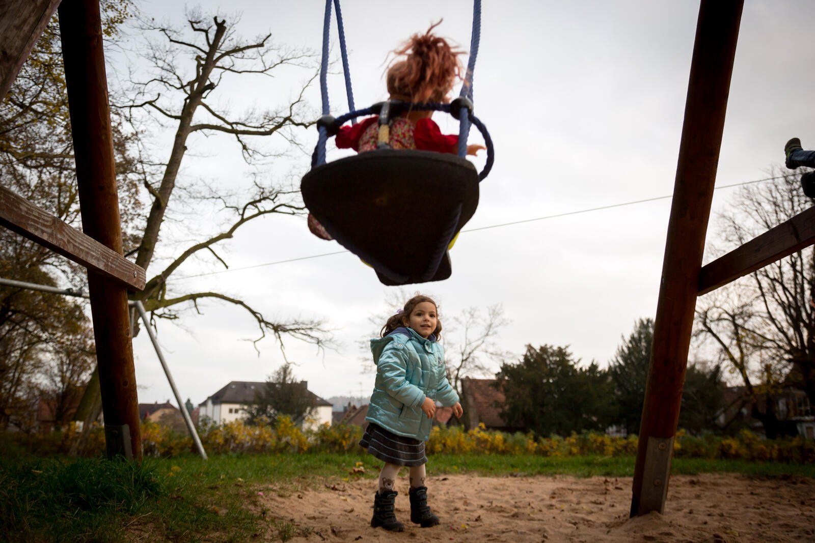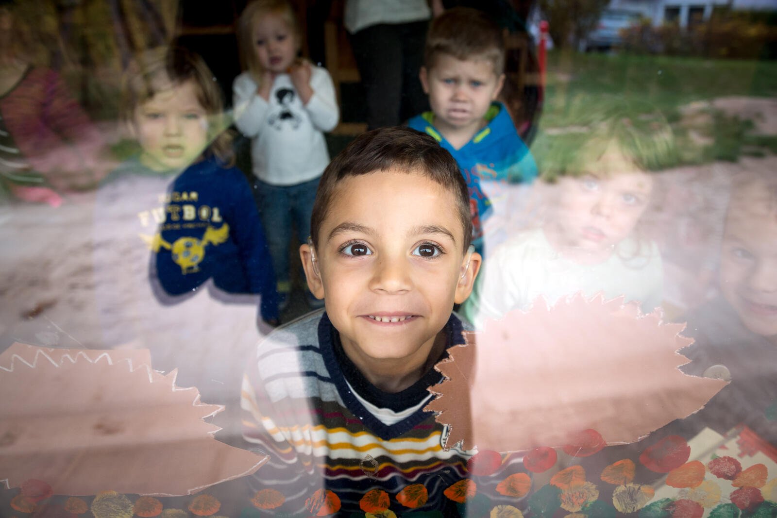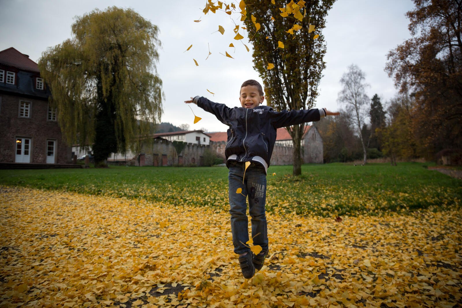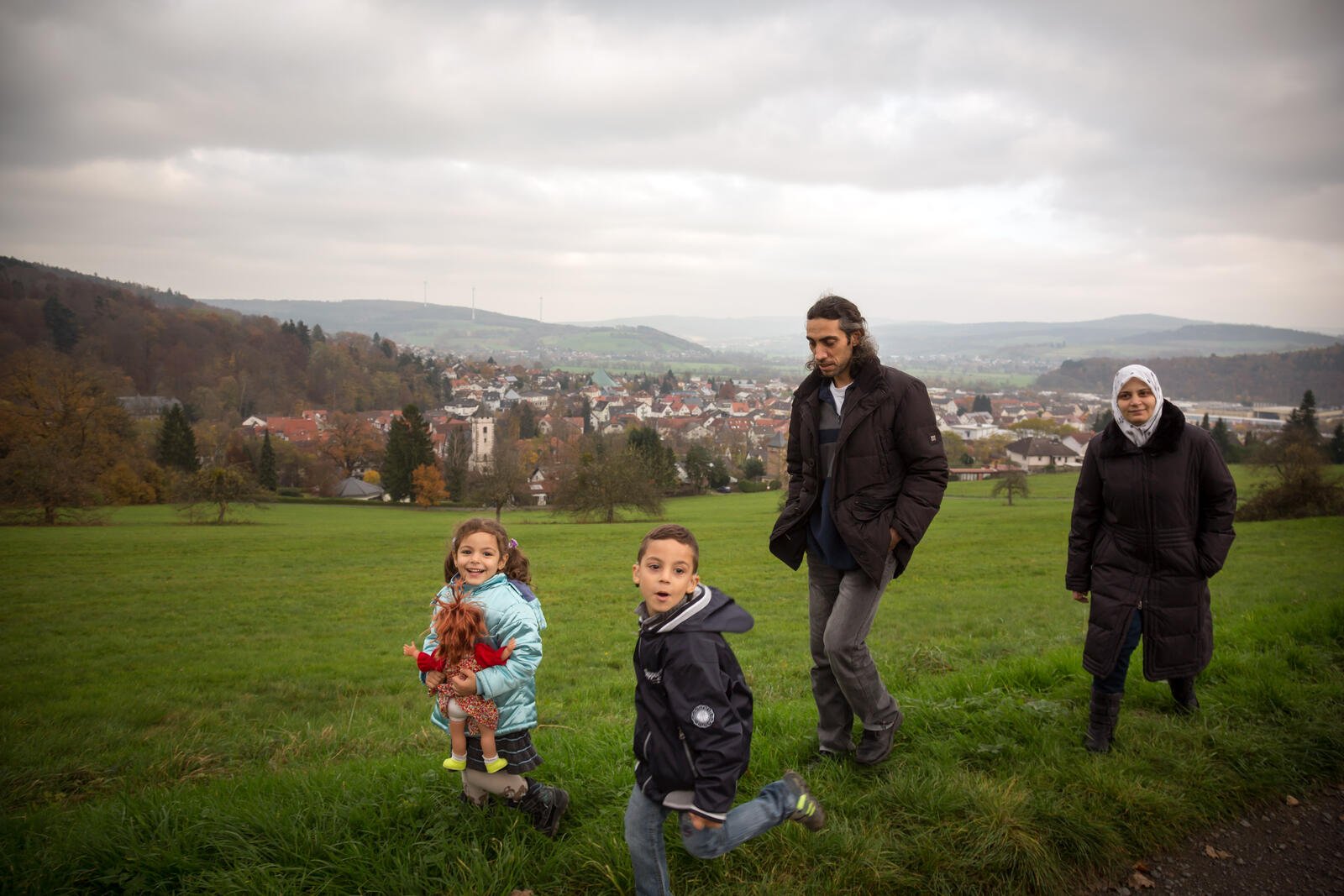 Young Abdu enjoys a walk with his family in the countryside near the German town Wächtersbach, where they were resettled. With cochlear implants and hearing aids, he can now hear almost perfectly.