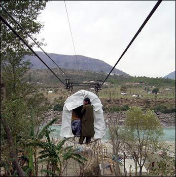The cable way is often used as a shuttle by some of the 19,000 people living in Meira camp - the biggest camp in the quake-hit north and still growing - to visit their home villages in the Allai Valley and report back to their communities in the camp.