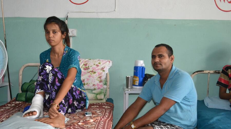 Laxmi with her husband after receiving successful treatment at the Centre. Photo credit: UNHCR/D. Uprety