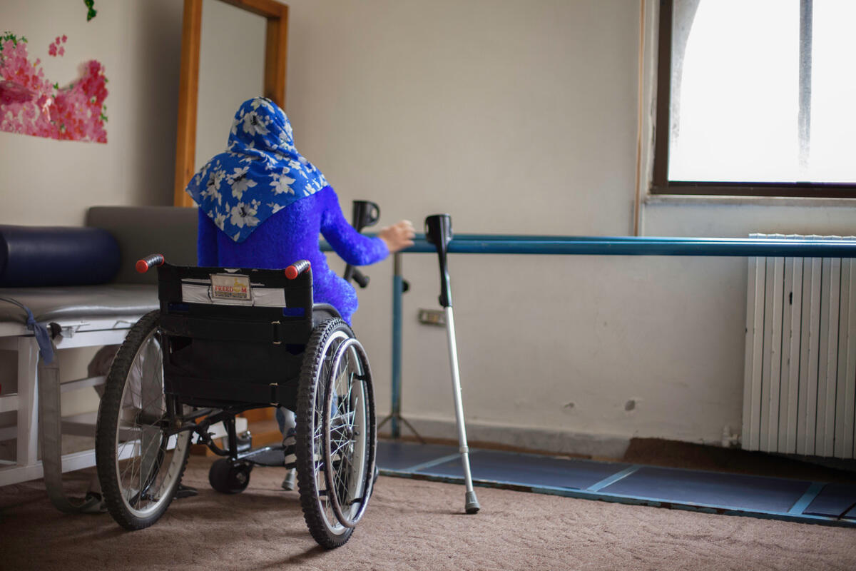 In mid-February, Wisam moved to a rehabilitation centre in Amman that is managed by Syrian-run charity Souriyat Across Borders. She began physiotherapy sessions to rebuild the atrophied muscles in her legs, exhausting herself during exercise sessions lasting up to three hours. “Those first steps were so sweet, but it also shook me to realize just how hard it was going to be to do something as simple as walking.”