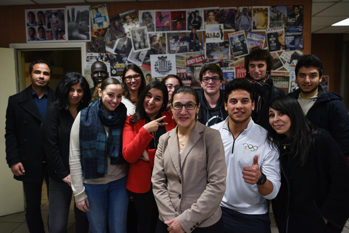 Members of the Refugee Olympic Team with United Nations High Commissioner for Refugees, Filippo Grandi, and UNHCR staff in the Olympic Village at Rio 2016.