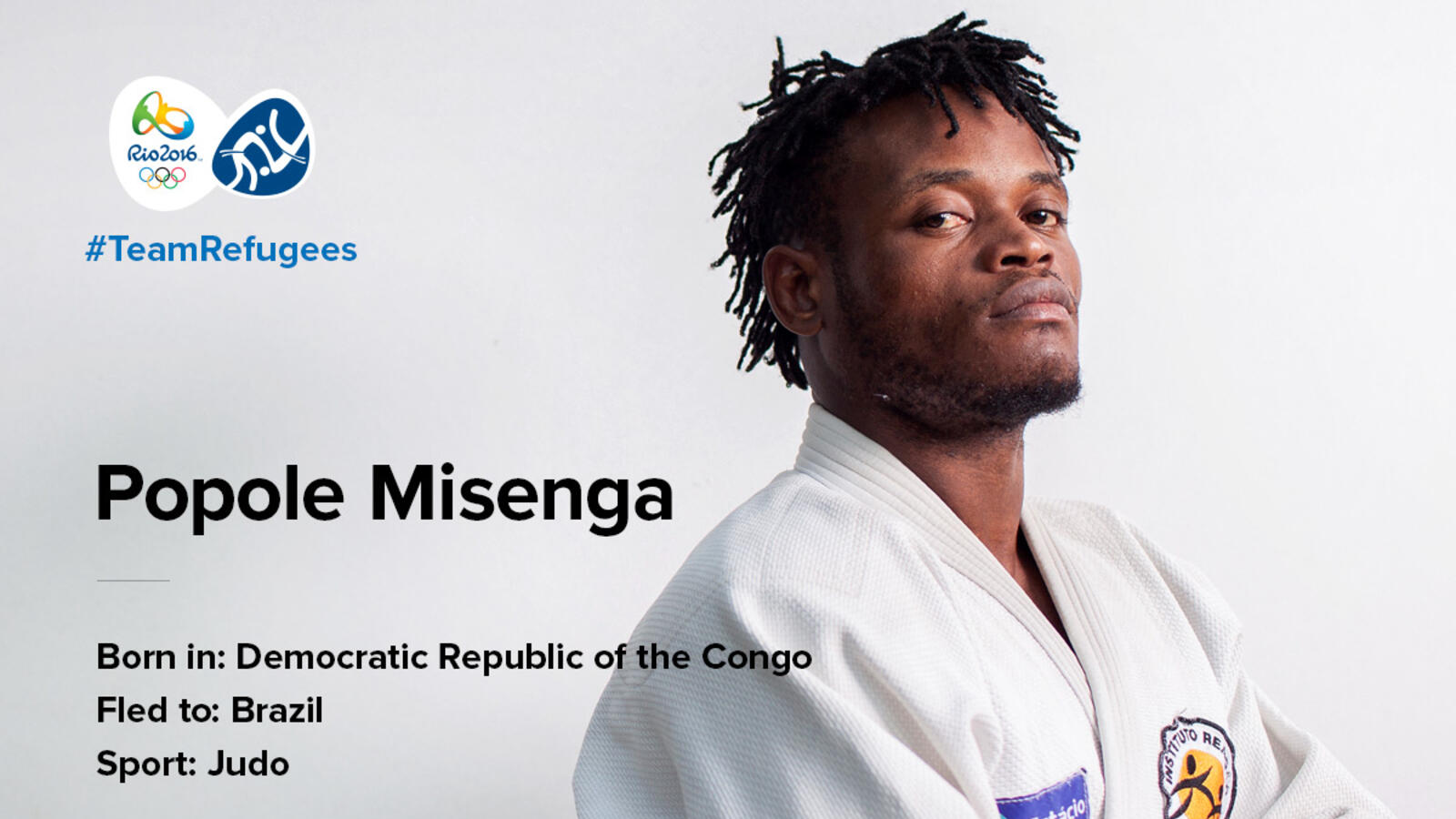 After gaining refugee status, Popole began training at the judo school founded by Flavio Canto, an Olympic bronze medallist. “I want to be part of the Refugee Olympic Athletes team to keep dreaming, to give hope to all refugees and take sadness out of them,” he says. “I want to show that refugees can do important things.” He also hopes to catch the attention of his relatives back home. “I will win a medal, and will dedicate it to all refugees.”