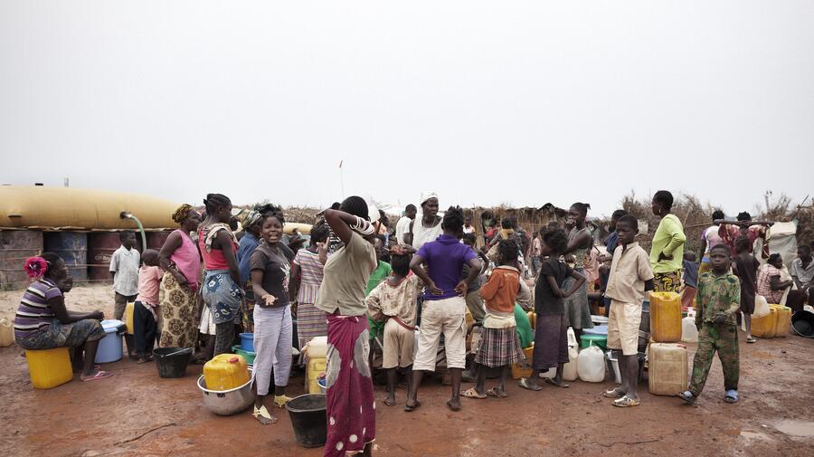 Internally displaced Central Africans gather to collect water. The needs of the newly displaced are great.