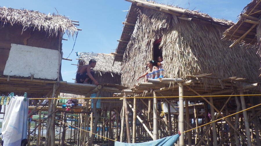 UNHCR lanterns brighten up nights in the Badjao village, still without electricity.