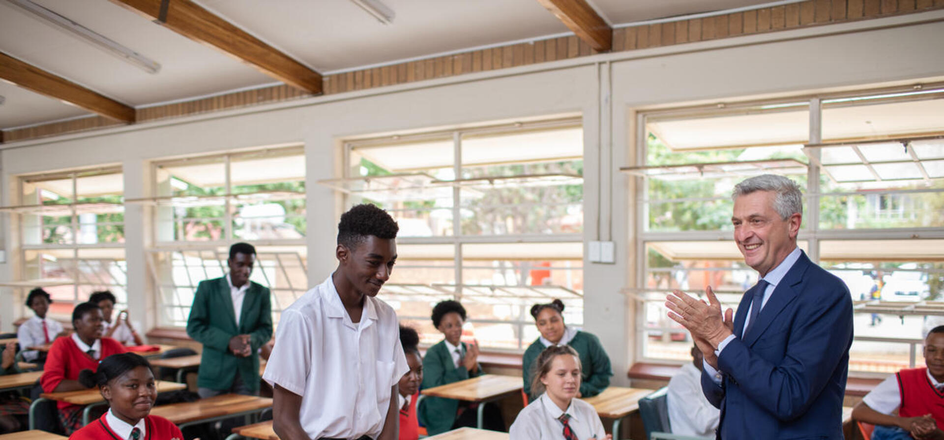 The refugee chief also visited Jules High School, an inclusive secondary school that enrols over 900 students,including refugees, asylum seekers and South African nationals. Encouraged by the diversity at the school, Grandi spent time interacting with the students who shared their experiences of learning side by side.