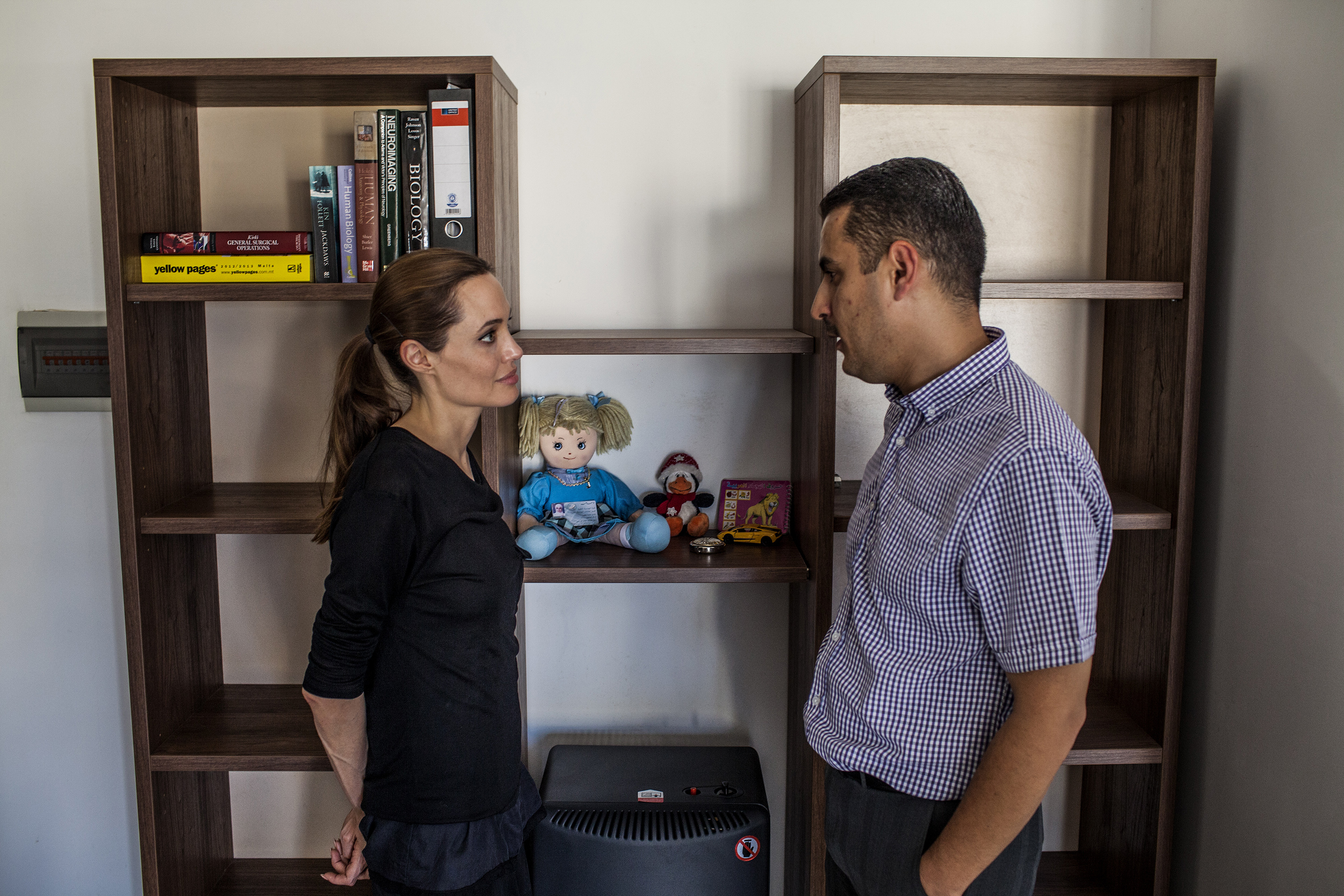 UNHCR Special Envoy meets Ayman Mustafa, a Syrian refugee from Aleppo, during her visit to Malta. The doctor's wife and daughter drowned when their boat sank in the Mediterranean last year.