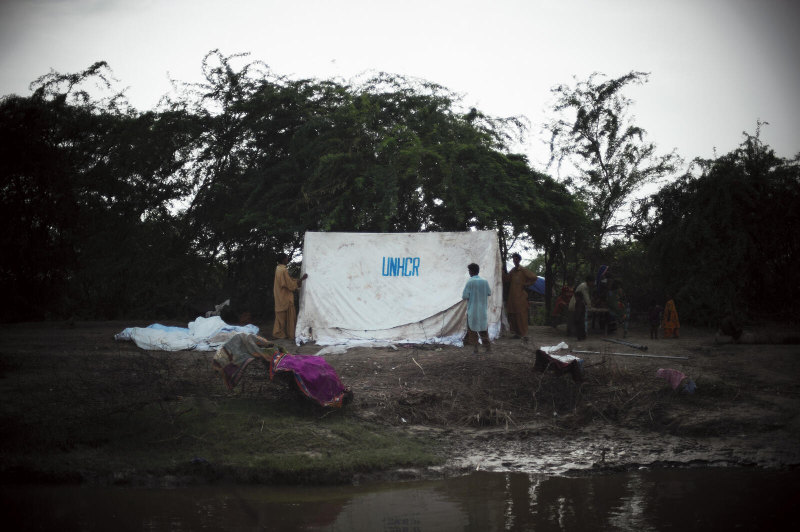 BADIN, Pakistan, September 20 (UNHCR) - UNHCR teams are ramping up their distribution of tents and other emergency aid supplies to families displaced by severe flooding in Pakistan. The refugee agency has committed to supplying 70,000 tents and 70,000 emergency aid kits containing household items as well as other relief items to flood victims.